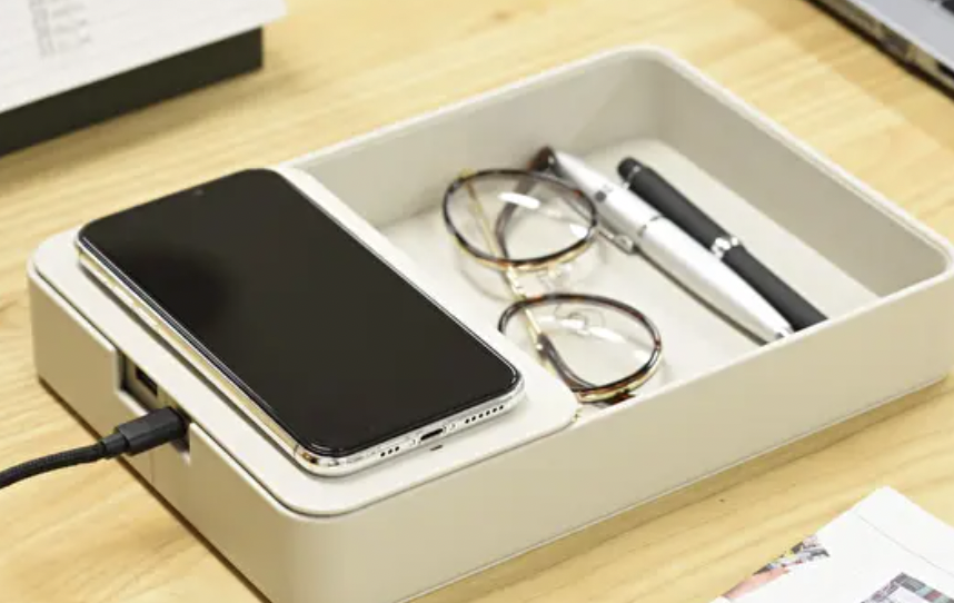- 次に最近買ったもので大ヒットだったのは、携帯が充電できて、小物もまとめておけるワイヤレスチャージャーデスクオーガナイザーです。おしゃれで机に置いていても野暮ったい感じがありません。携帯同様、家の鍵、車の鍵、コードレスイヤホンなど出かける時に必要なものをまとめて置くことができて便利です。いつも迷子になりがちだった家の鍵も、今では定位置を見つけて出かける前に大捜索することもなくなりました。